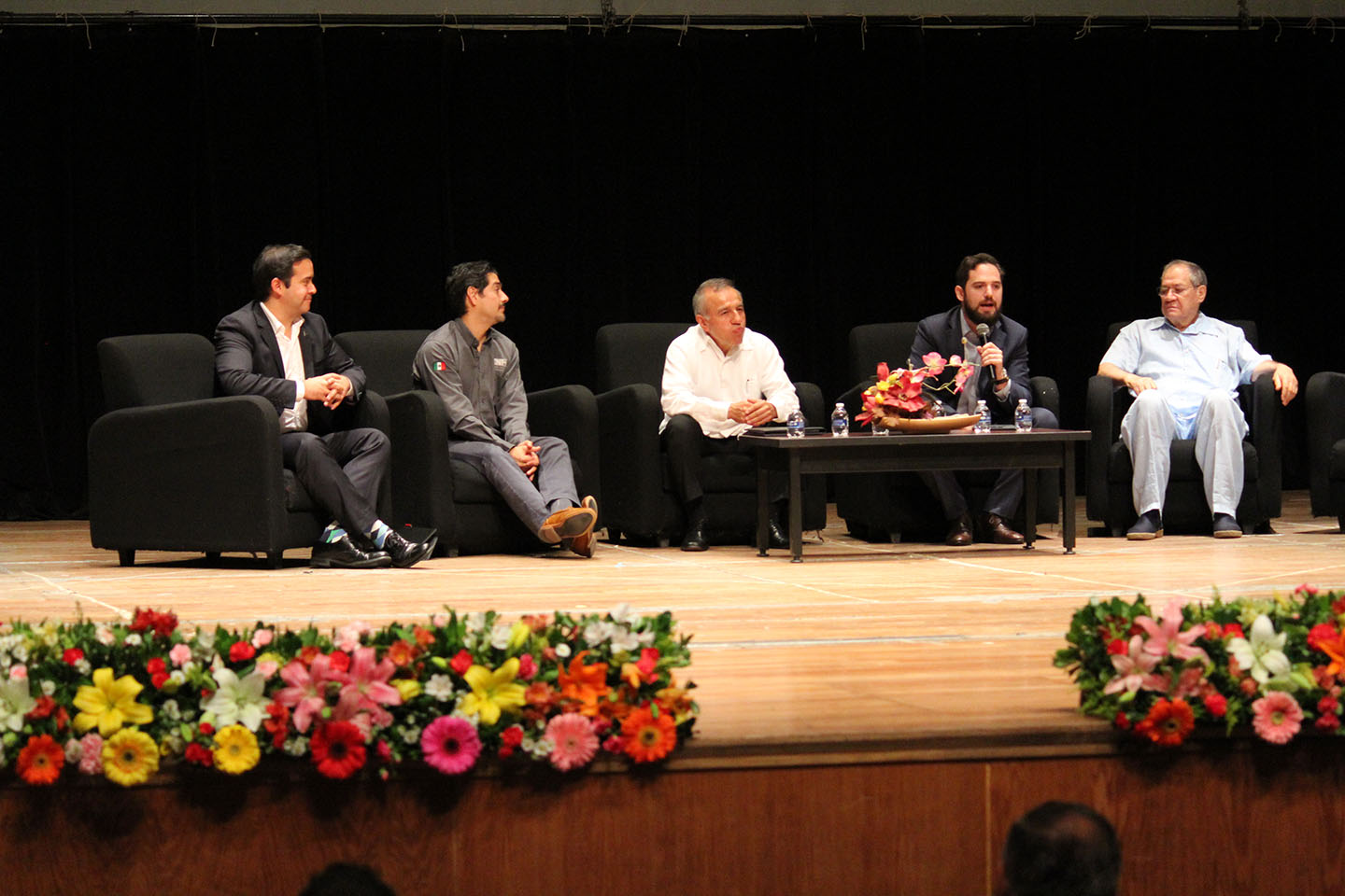 El Presidente del Consejo de Administración de Editorial Liberal del Sur, Lic. Lorrimer Álvarez Peña; el Lic. Gabriel García Márquez, miembro del Consejo de Administración de Liberal del Sur y el C.P. Alfredo Cano Vázquez, Subdirector de Liberal del Sur. La Subdirectora de Planeación y Vinculación del Tecnológico de Minatitlán, Ing. Graciela del Carmen Santos Ruiz; el Director de Cecytev Plantel Pajapan, Lic. Jordi Bernal Medina; el Jefe de la carrera de Ingeniería Petrolera del Instituto Tecnológico Superior de Las Choapas, Ing. Juan Martínez Méndez; el Ing. Jorge Arturo Arboleya Pastrana, el Presidente del Colegio de Contadores, C.P.C. Óscar Castillo García; el C.P.C. Antolín Pérez Rodríguez, el C.P. Armando Muñoz Sandoval y la C.P. Lourdes Marín de Muñoz; el Ing. Marco Augusto Rodríguez Hernández de la Asociación Mexicana de Geólogos Petroleros; el Gerente del Holiday Inn, Lic. Marco Antonio Elías Lian.