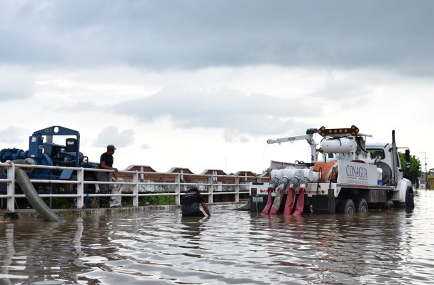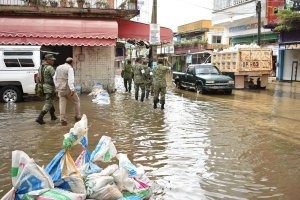 En el área del malecón continúan trabajando los elementos del Ayuntamiento, de la Comisión Nacional del Agua, Ejército Mexicano y sociedad civil en el levantamiento de un muro provisional de contención a fin de evitar que el nivel del agua alcance mayores niveles en la zona centro de la ciudad.