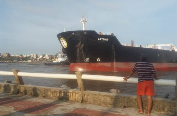 El barco petrolero Artemisa, encalló en el río Coatzacoalcos.