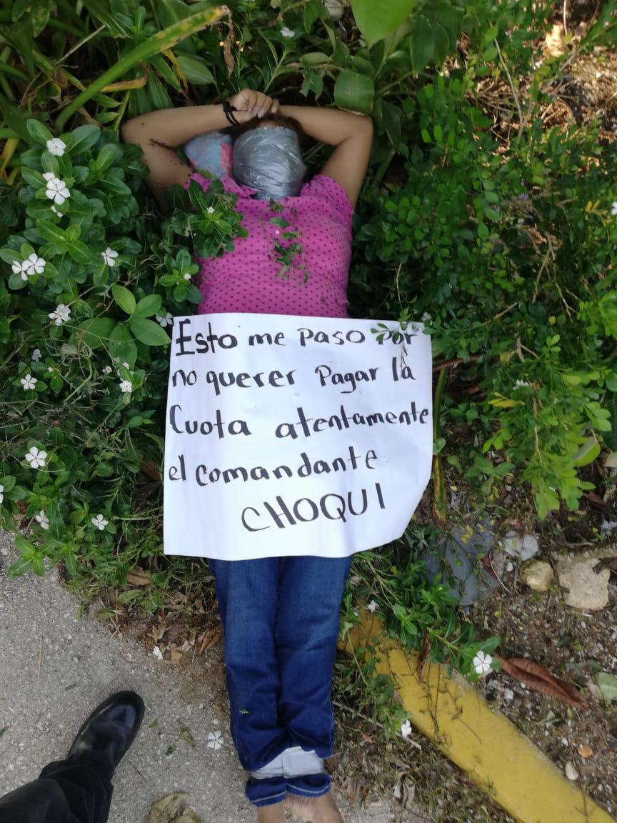 De acuerdo a una cartulina que le dejaron sus ejecutores encima del cadáver, fue asesinada porque no les pagaba cuota.