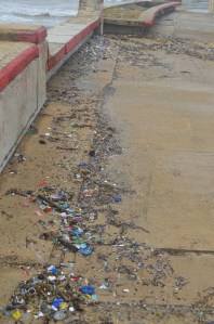 Toneladas de basura, desechos plásticos, fueron arrojados desde el fondo marino hasta el malecón costero.