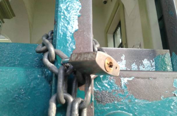 Cadenas y candados fueron colocados en los tres portones del Palacio Municipal a modo de protesta e impedir el acceso a los trabajadores, indicó la presidenta de la Asociación Civil “Renovación Veracruzana”, Arely Hernández Alvarado.