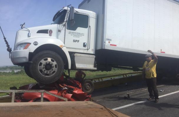 Tragedia en la autopista; mueren aplastados en su vehículo