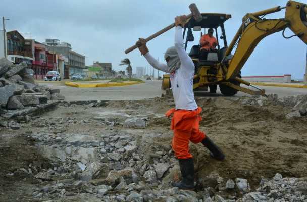 El segundo punto atendido fue Malecón Costero e Independencia y otros sitios a rehabilitar esta semana son: Jirafas y malecón, y Francisco Mata y malecón.