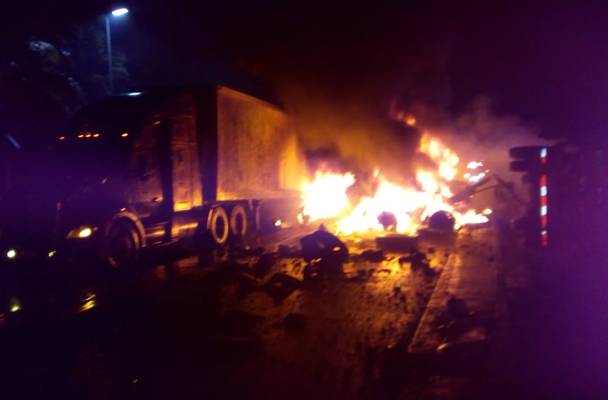 Tres personas muertas y seis lesionadas es el saldo luego de que un camión de doble remolque que transportaba melaza se impactara anoche contra tres vehículos y dos cabinas de cobro de la caseta de peaje ubicada en la autopista Córdoba-Veracruz, generando una explosión e incendio.