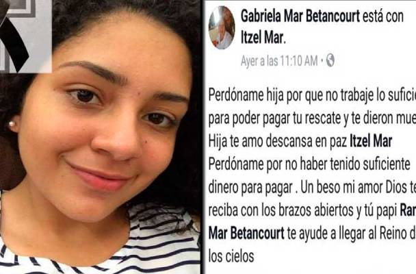 «Perdóname, hija, porque no trabajé lo suficiente para poder pagar tu rescate», escribió la señora Gabriela Mar, en sus redes sociales, al lamentar la aparición del cuerpo de su hija Itzel Mar, quien fue secuestrada hace un mes en el norte de Veracruz.