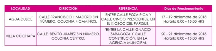 Finalmente, la Vocal Ejecutiva, informa que con motivo del periodo vacacional los módulos de atención ciudadana estarán operando hasta el día sábado 22 de diciembre del presente año, reanudando actividades el día 2 de enero de 2019.