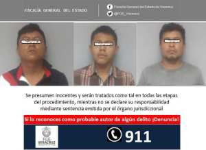 Procede FGE contra tres detenidos por robo agravado, robo de vehículo y posesión de metanfetamina, en Coatzacoalcos.