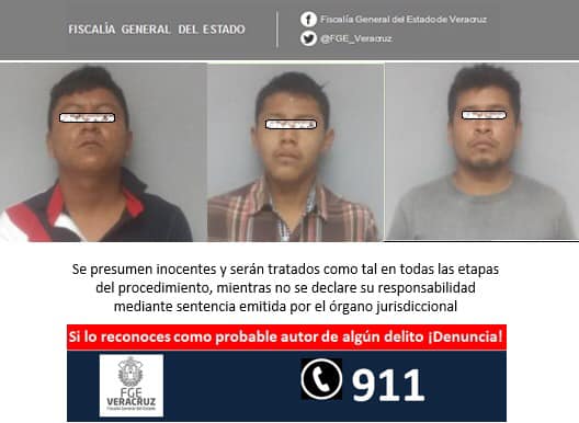 Procede FGE contra tres detenidos por robo agravado, robo de vehículo y posesión de metanfetamina, en Coatzacoalcos.