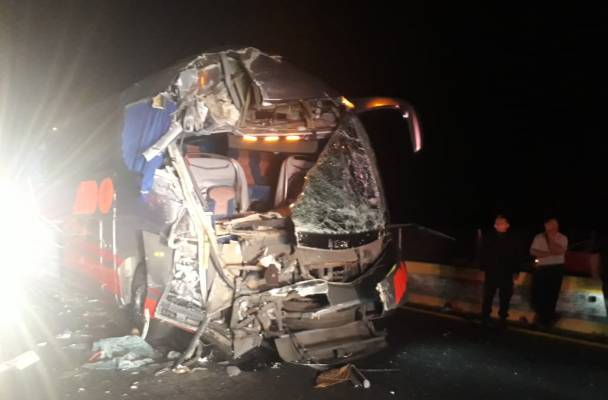 Reportes oficiales señalan que a la altura del kilómetro 64 se impactaron dos autobuses de pasajeros, uno de la línea Autobuses del Oriente (ADO), el otro de turismo.