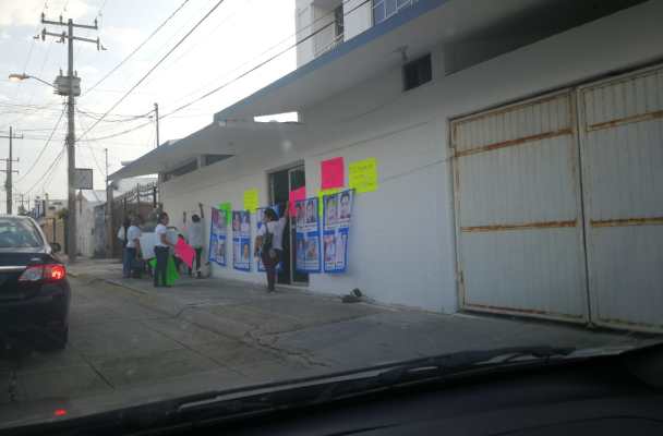 Esta mañana en Coatzacoalcos previo al regreso a clases, las manifestantes portaban lonas en las oficinas de la Fiscalía Regional.
