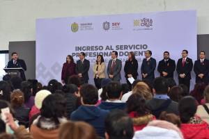 El titular de la SEV, Zenyazen Escobar García, hizo este anuncio en el marco del Ingreso al Servicio Profesional Docente, con el otorgamiento de 307 plazas magisteriales, y apuntó que dicho programa busca que las escuelas obtengan certeza jurídica del derecho de propiedad.