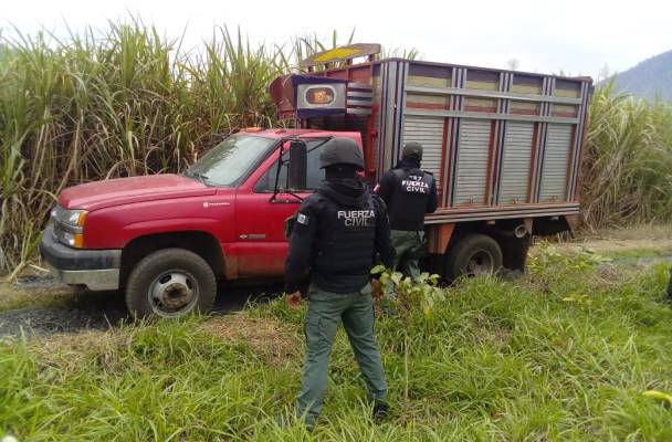 En la localidad Capoluca, perteneciente a Ixtaczoquitlán, elementos de la Fuerza Civil aseguraron dos camionetas: una tipo estaquita, marca Nissan, con placas SK6-3054, y una marca GMC, modelo 2004, con placas SK9-6389, ambas con reporte de robo, que trasladaron a un corralón, en el municipio de Rafael Delgado.