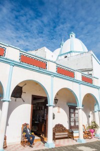 Sigo hasta la Capilla de Nuestra Señora de la Candelaria, un templo en rosa pálido con decoraciones en blanco. La Virgen de la Candelaria es su santa patrona. Su imagen apareció en las aguas del Papaloapan y la rescataron por ahí del siglo XVIII.