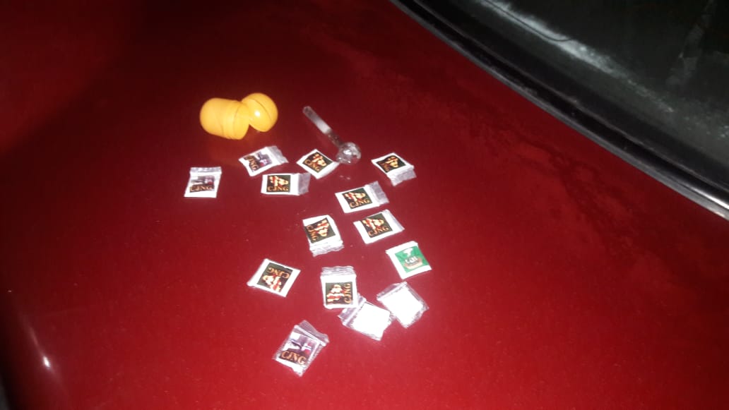 Dentro del automotor, los efectivos encontraron 11 dosis de lo que parece ser cocaína, tres de lo que parece ser cristal y una pipa.