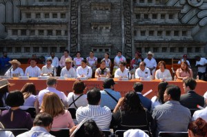 Durante la presentación estuvieron: los alcaldes de Papantla, Mariano Romero González, y de Poza Rica, Francisco Velázquez Vallejo; el presidente del Consejo Supremo Totonaca, abuelo Gerardo Cruz Espinoza, y el director del Centro de las Artes Indígenas (CAI), Humberto García García.