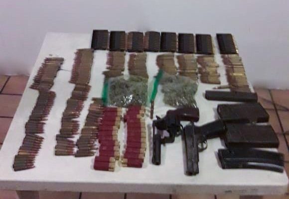 *Les aseguran 619 municiones, un vehículo, 2 armas de fuego y lo que parecía marihuana