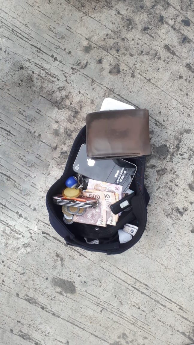 Al ubicar al sujeto, dijo llamarse Enaud “N” de 31 años, originario de Xalapa y de ocupación albañil. Dentro de su mochila llevaba objetos que había robado en el negocio mencionado, dinero en efectivo y lo que simulaba ser un arma de fuego, pero era de juguete; lo cual le fue asegurado.
