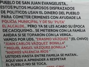 Dichos mensajes replican el mensaje que dejaron en Coatzacoalcos hace unos días, presuntamente integrantes del CJNG, desligándose de los secuestros y cobros de piso, además de la muerte de una empresaria porteña.