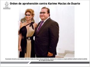 En una conversación desde el Reclusorio Norte con Ciro Gómez Leyva en Radio Fórmula, Duarte denunció que su esposa, Karime Macías, vive una persecución política, pues ella jamás fue funcionaria pública.