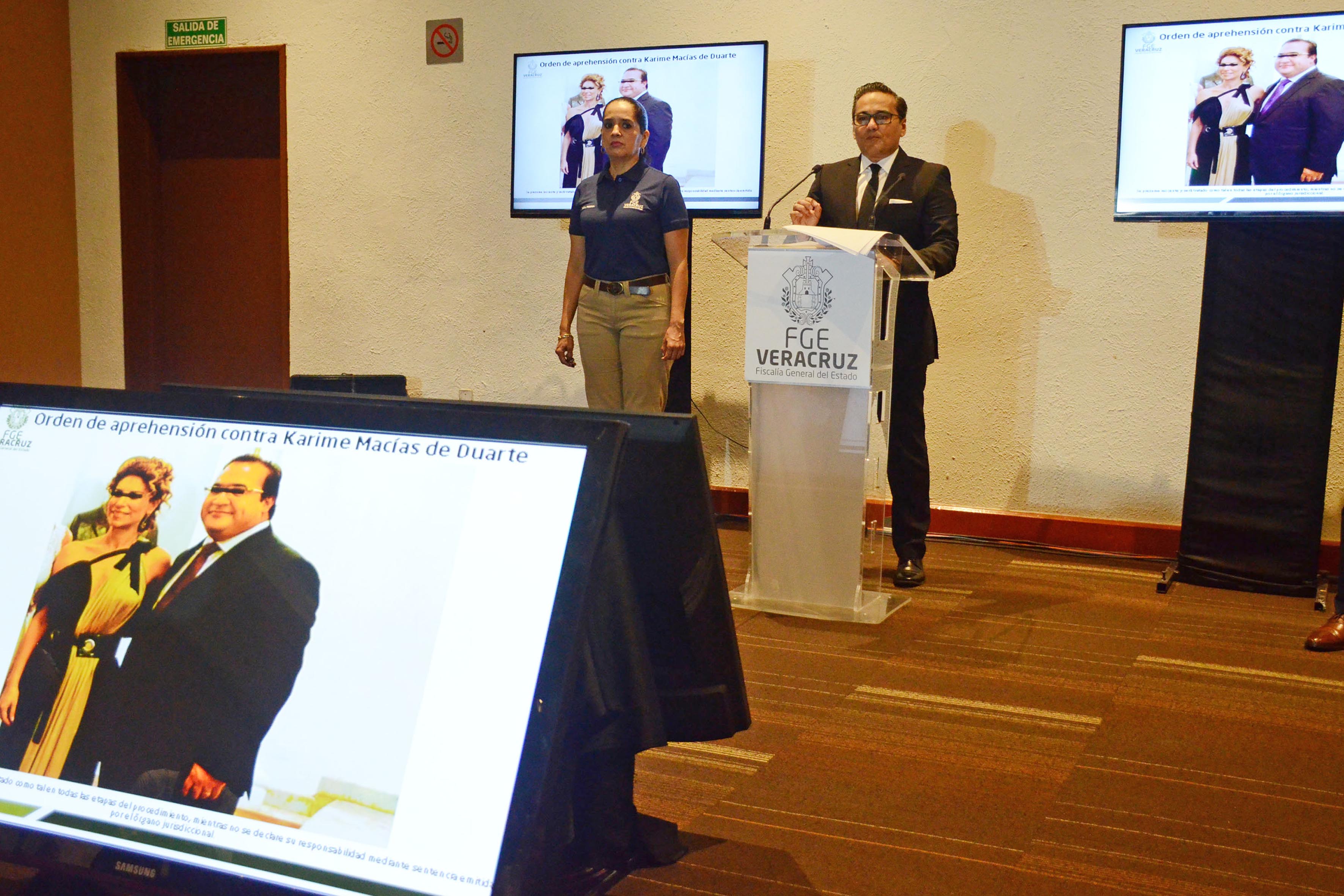 El Fiscal General del Estado Jorge Winckler Ortiz, en rueda de prensa anunció que se ha girado orden de aprehensión contra la ex presidenta del DIF estatal y ex primera dama de Veracruz, Karime Macías Tubilla