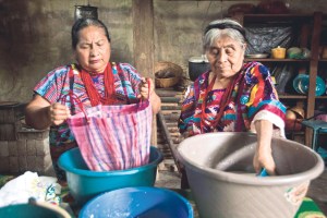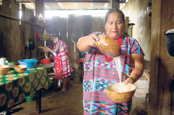 Su hija, profesora retirada, colabora en la molienda y preparación del atole de maíz. Ambas siguen paso a paso el ritual de preparación en su cocina de madera y palma. Entran y salen sin perder el cuidado del atole que se espesa en un fogón a ras del suelo.