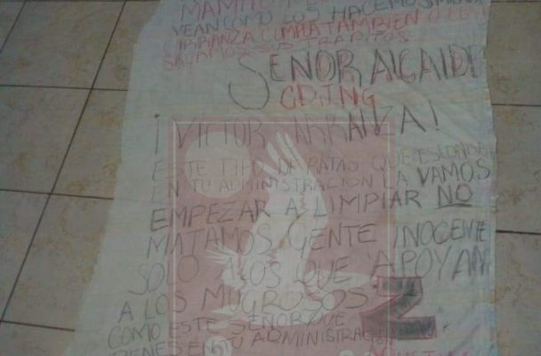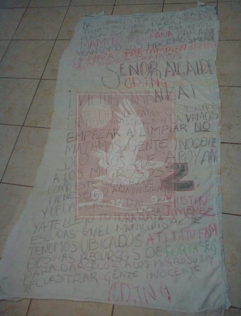 Aparece narco-manta con amenazas a Víctor Carranza