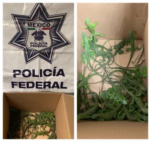A través de su cuenta en Twitter @PoliciaFedMx, la Policía Federal informó: “#Veracruz. En una empresa de paquetería en el Aeropuerto Internacional, policías federales encontraron 24 iguanas vivas, fueron rescatadas y puestas a disposición de las autoridades ambientales. El paquete tenía como destino #Coahuila”.