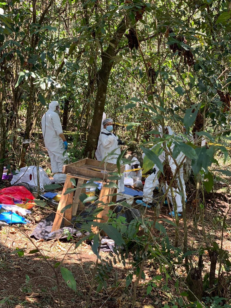 “Hasta el día viernes nos quedamos en 12 cuerpos exhumados recuperados; además de 3 fosas más marcadas positivas por los binomios caninos, este martes se retoman los trabajos con los jóvenes de Servicios Periciales de la Fiscalía, los cuales están apoyando para dar continuidad a las fosas que se quedaron marcadas y delimitadas”.