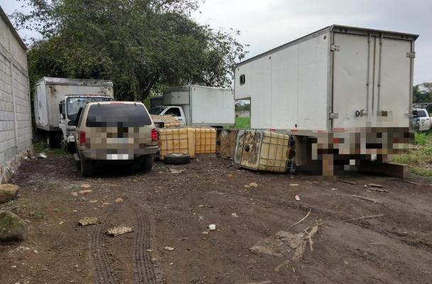 De inmediato, arribaron al lugar elementos de las secretarías de Seguridad Pública (SSP) y de la Defensa Nacional (SEDENA), donde aseguraron dos camionetas con caja seca, una camioneta FordExplorer y un camión marca Isuzu, con caja seca, los cuales contaban con reporte de robo; además de varios contenedores.