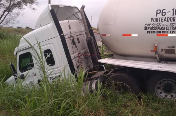 El carro tanque estaba cargado con gas propano y cuyo conductor se salió de la carretera porque supuestamente lo querían asaltar.