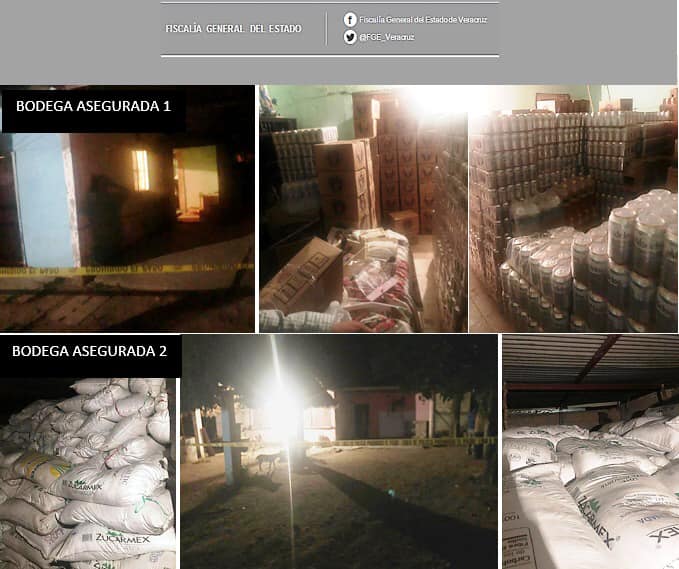 Al ejecutar otra orden de cateo en una segunda bodega ubicada en el mismo municipio, fueron localizados 378 bultos de azúcar de 50 kilogramos cada uno, con un costo aproximado a 264 mil pesos.