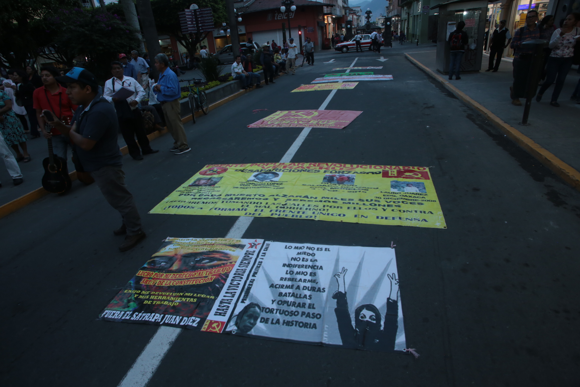 Tras congregarse en el parque Apolinar Castillo de esta ciudad, salieron a marchar por las calles para regresar al punto de encuentro, en donde colocaron sobre la calle madero, un “tendedero” y mantienen un mitin político.