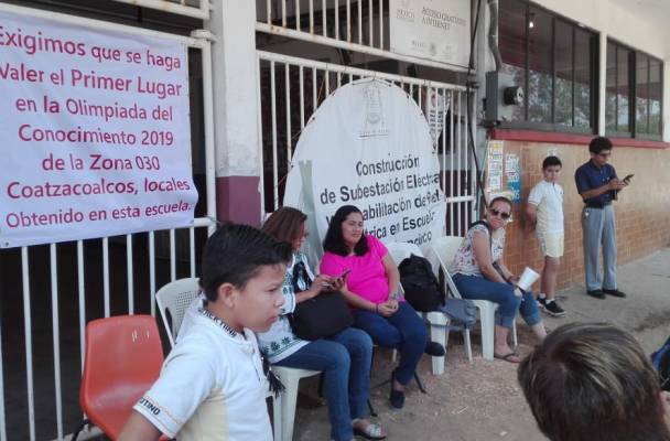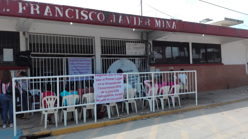 Profesores de la escuela primaria Francisco Javier Mina de Coatzacoalcos, tomaron las instalaciones porque no reconocieron ganadores a dos estudiantes en una competencia de conocimiento.