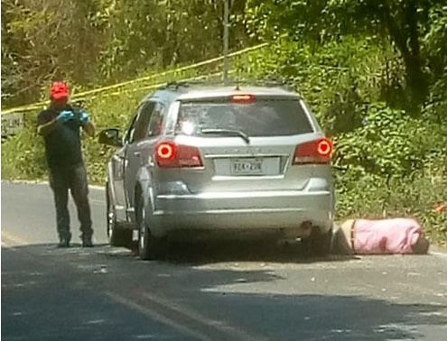 A la altura de la comunidad Reforma Escolín pasando los topes, dos sujetos a bordo de una motocicleta acribillaron a 5 personas que viajaban en un vehículo marca dodge tipo journey modelo 2012, color gris placas de circulación 924ZUB del Estado de Veracruz.