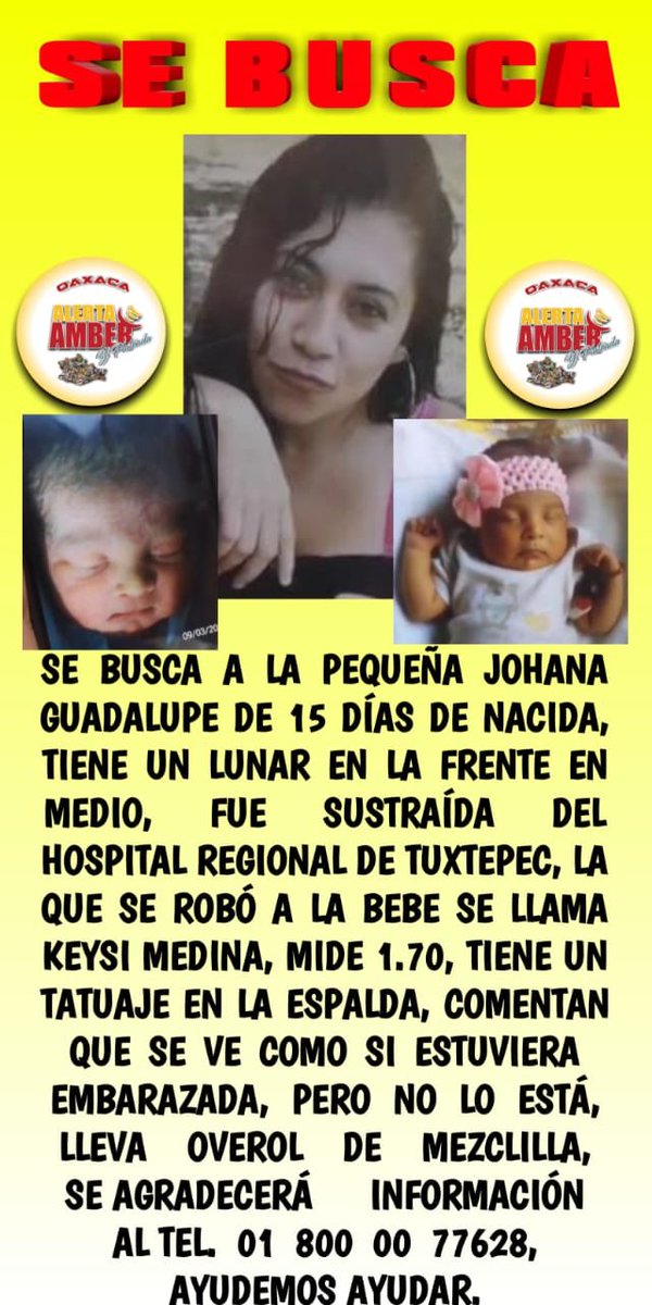 Tras cinco horas de angustia para la familia de la recién nacida sustraída al exterior del Hospital Regional de Tuxtepec, Oaxaca, cerca de las 20:00 horas la bebé fue localizada en el municipio de Otatitlán, Veracruz, a unos 30 kilómetros de Tuxtepec.