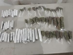 De inmediato, los elementos le marcaron el alto y le realizaron una revisión preventiva, encontrando entre sus pertenencias varias bolsitas pequeñas que en su interior contenían hierba verde, con las características propias de la marihuana.