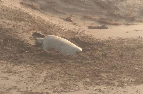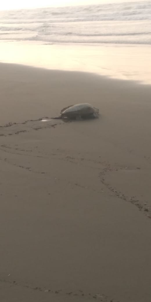 Ayer lunes por la tarde, una tortuga marina de la especie Lora llegó a desovar a sus crías a playas de Coatzacoalcos.