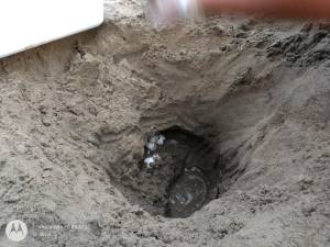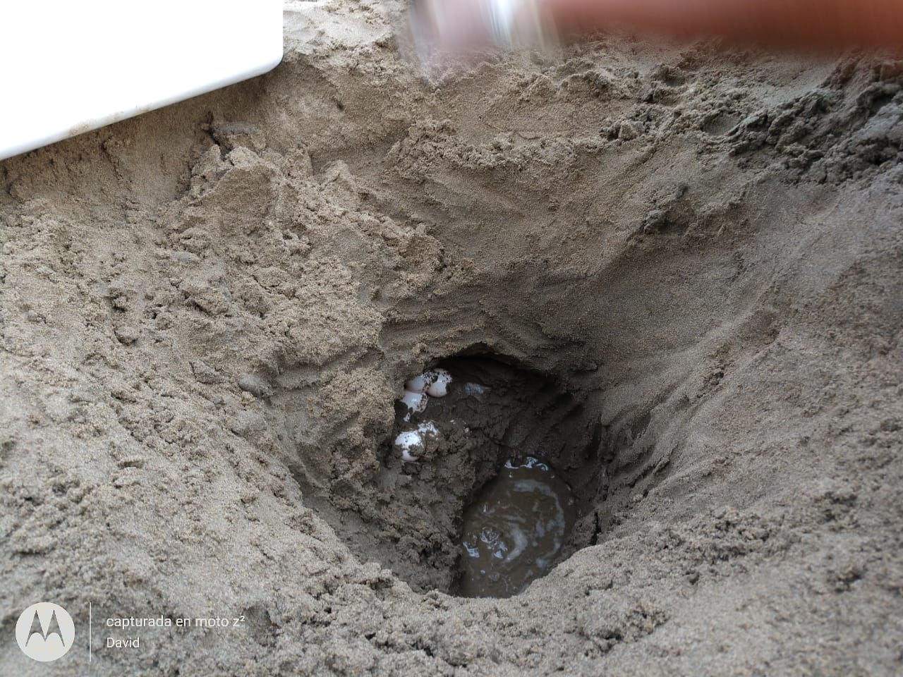 Luego que la tortuga hizo su nido, procedió a retirarse nuevamente hacia dentro del mar del Golfo de México.