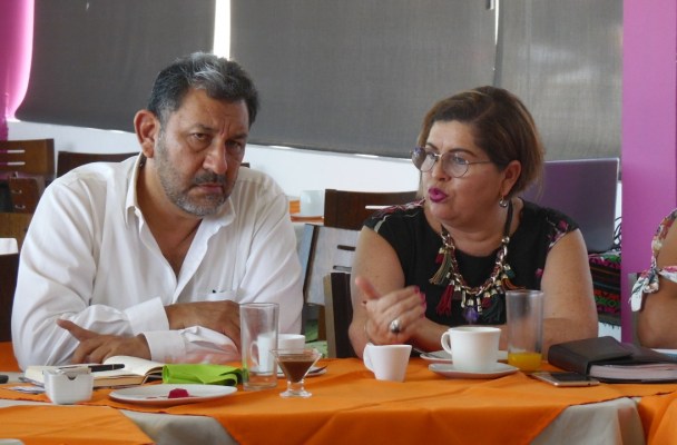 La presidenta de AMEXME, Gabriela Cordero Urbieta, y socias empresarias de Coatzacoalcos, que participaron en este desayuno con el presidente de la Comisión Legislativa de Desarrollo Económico y Corredor Transoceánico, Amado Cruz Malpica, expresaron sus inquietudes acerca de las expectativas que ofrecen los nuevos proyectos a los empresarios locales, y los caminos a seguir para integrarse como asociación a esta nueva visión gubernamental.