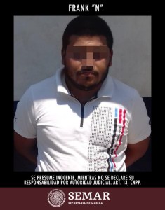 La Secretaría de Seguridad Pública (SSP), en coordinación con la Secretaría de Marina-Armada de México (Semar) y la Policía Naval, detuvieron a Frank N, alias “El Frank”, perteneciente al cártel de Los Zetas, identificado como jefe operativo de esta organización criminal en el municipio de Agua Dulce.