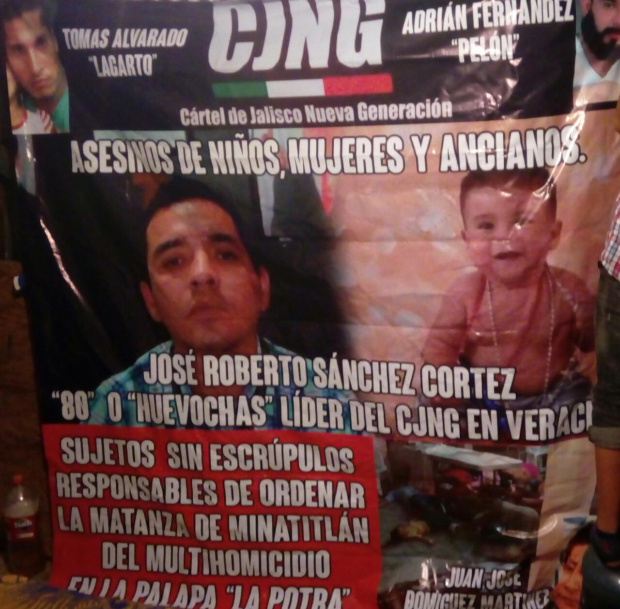 Elementos de la Policía lograron desinstalar unas narco-lonas en donde se atribuye la autoría del multi-homicidio de Minatitlán a una célula del crimen organizado en esta zona