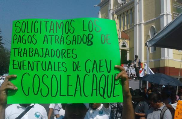 También se sumaron a las manifestaciones los trabajadores dea Comisión de Agua del Estado de Veracruz (CAEV) de Cosoleacaque quienes exigieron el pago de sus salarios, los cuales han quedado pendientes desde hace un mes.