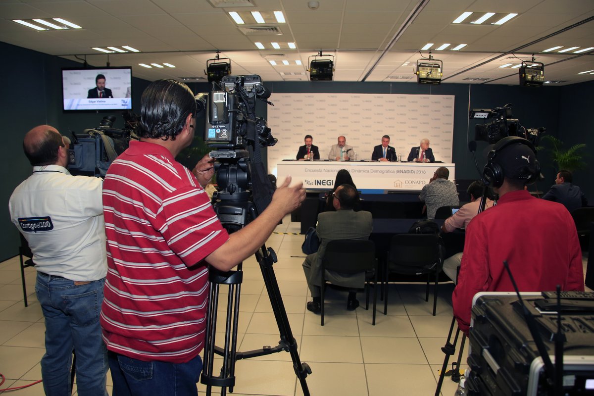 Integrantes del Inegi y del Conapo presentando la Enadid 2018.