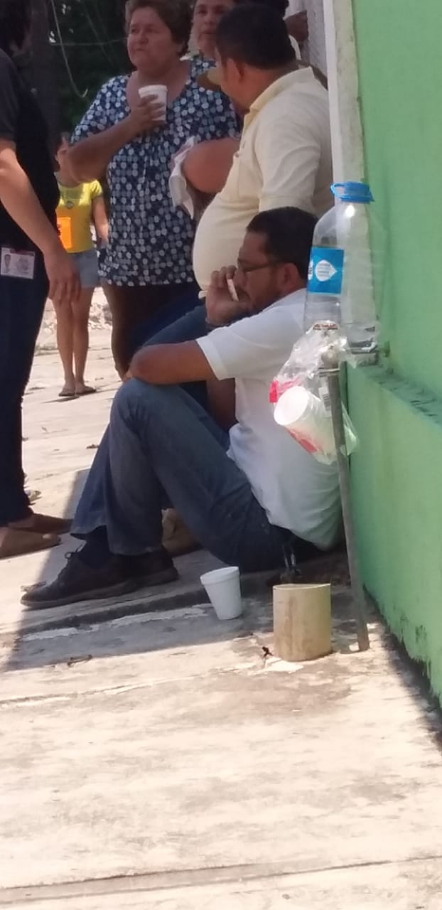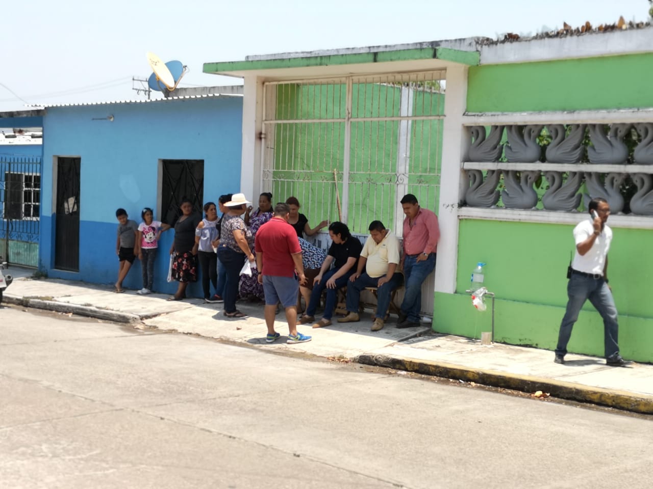 Sin energía eléctrica, pues la cortaron al cruzar las puertas, vecinos y personal de la CFE aguardan amontonados en medio del sofocante calor la llegada de Luis Benito Domínguez Linaldi, gerente del área de distribució, quien prometió resolución pronta para los vecinos de al menos 5 calles del Barrio de Las Flores quienes mantienen un bloqueo a las oficinas de la CFE.