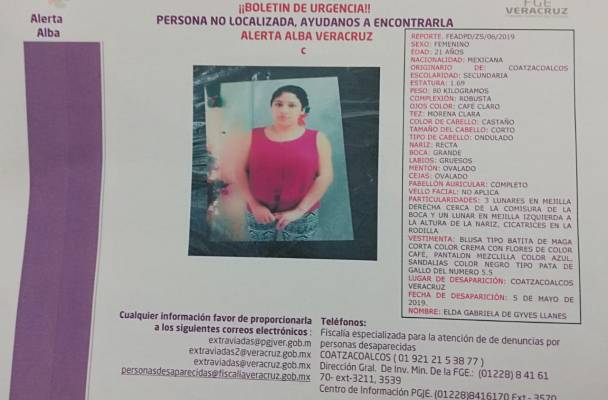Luego de la publicación difundida el día de ayer en los principales medios de comunicación de Coatzacoalcos, para localizar a la joven Elda Gabriela de Gives Llanes de 21 años de edad, finalmente podemos informar que ella se encuentra sana y salva con su familia .