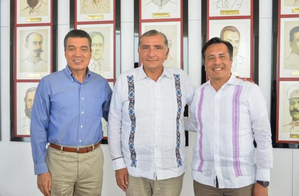 El gobernador Cuitláhuac García Jiménez se reunió con sus homólogos de Tabasco, Adán Augusto López Hernández, y Chiapas, Rutilio Cruz Escandón Cadenas, en esta ciudad, a fin de diseñar estrategias y coordinar los trabajos en materia de seguridad pública, en los límites territoriales de las tres entidades.