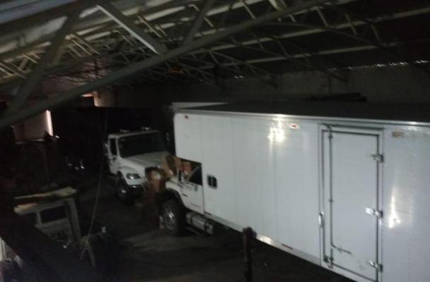 También se localizó un tractocamión de carga tipo torton, un camión de transporte privado con placas de Tlaxcala, así como una camioneta compacta con placas de la Ciudad de México.
