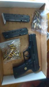En una primera acción, en la localidad Palo Gordo en Huayacocotla, los elementos realizaron una revisión preventiva a un sujeto con actitud sospechosa, identificado como José “N”, de 23 años de edad, a quien le encontraron un arma Colt 9 milímetros, modelo 2000, y dos cargadores: uno con 15 tiros y uno en la recámara, y el otro con 12 cartuchos útiles.