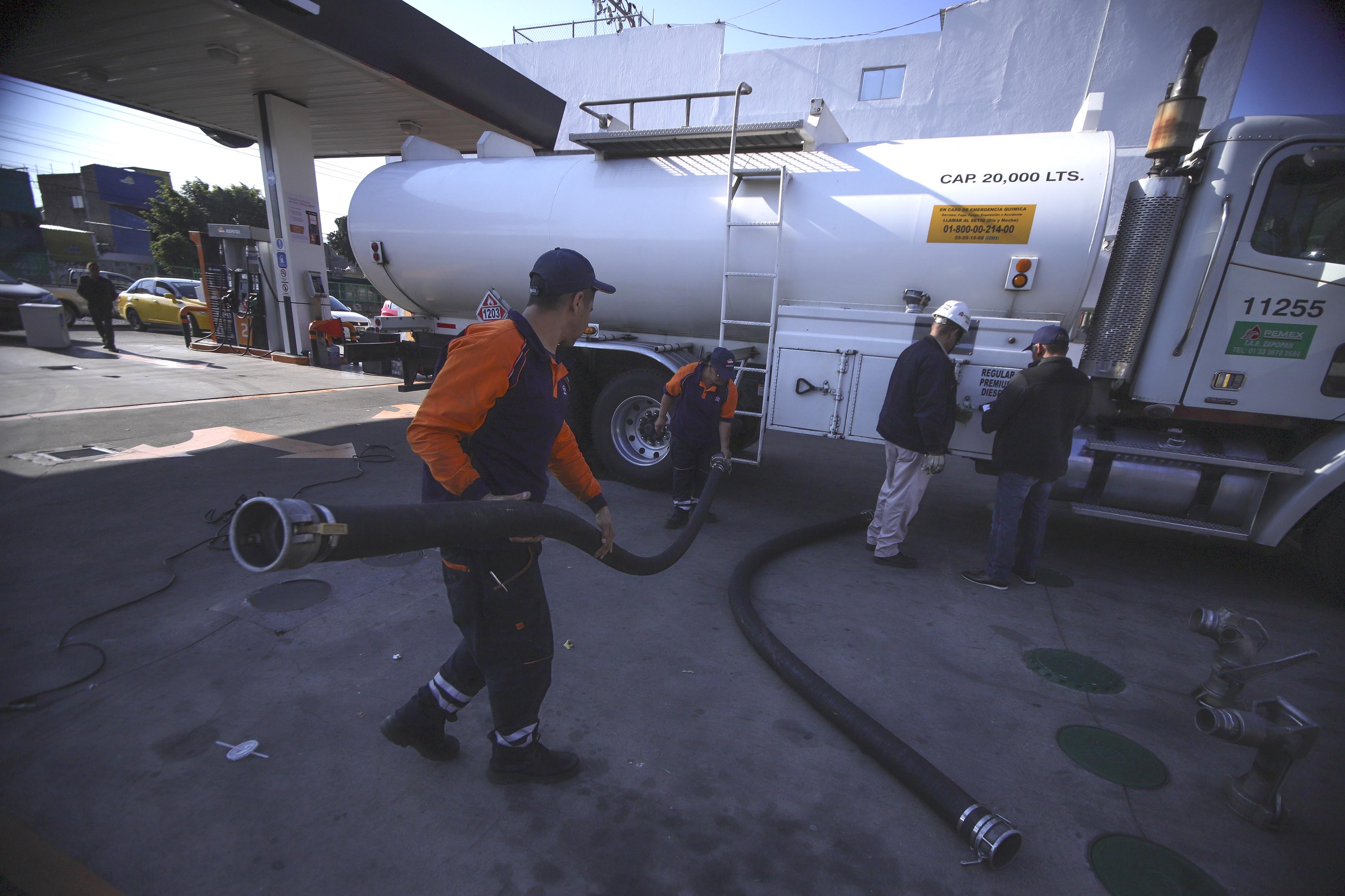 Una pipa de Pemex abastece de combustible a una gasolinera en la zona metropolitana de Jalisco, mientras que varios estados sufren de desabasto.